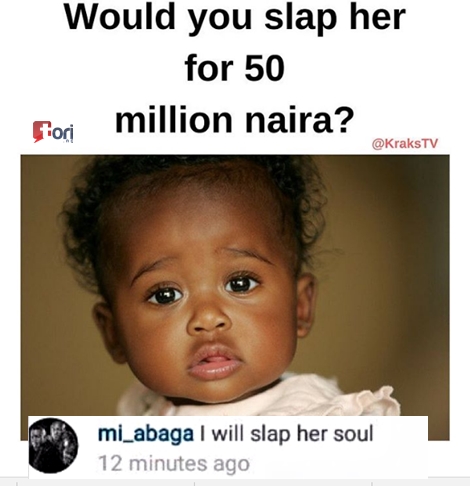 The self-acclaimed Mr. Incredible made the revelation as a response to a caption on a photo shared by Kraks TV on Instagram, which asked if its follwer would slap the child on the photo for N50 million.