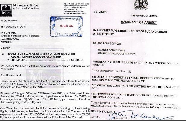 “To our clients’ utter shock, Wizkid and his troupe did not turn up for the concert despite assurance to the contrary and which assurances were made up to the last very minute. This misconduct by the accused forced our client to file a case against the accused persons vide case number 875 of 2016,” Muwemas’ demand for a Red Notice to the Interpol Director in Uganda stated in part.