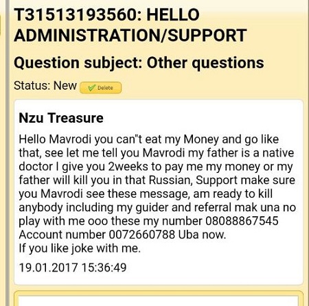 A Nigerian man has threatened MMM operators and administrators to attack them spiritually if his money is not refunded.