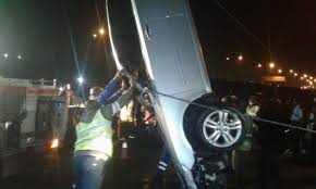 It was yet another tragedy in the comemercial city of Lagos late on Saturday after car skids off the expressway and plunged into the Lagoon from the Mekwen Bridge, Bonny Camp, inward Marina area of the state as a pregnant woman, identified as Chinagorom Fustine, was killed in the car accident.