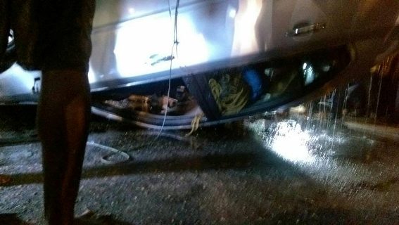 “We received a distress call regarding a car that plunged into the lagoon at the Mekwen Bridge at about 7.47pm on Saturday.