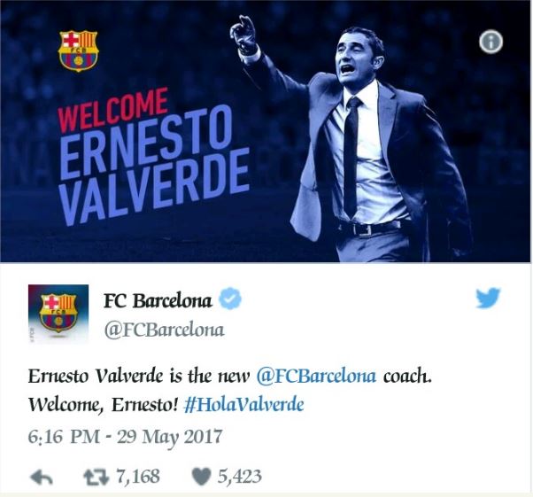 The Catalan Club confirmed that Ernesto Valverde will be their new coach for the 2017-18 season.