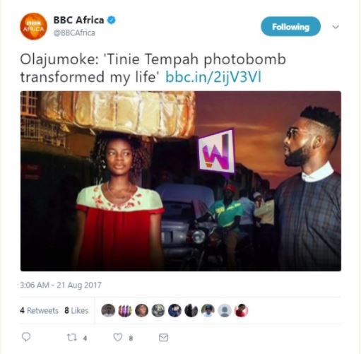 The mother of two and Osun State native who came into limelight after she photobombed British rapper, Tinny Tempah's photoshoot as organised by celebrity photographer, TY Bello recently got featured on BBC in a short documentary.