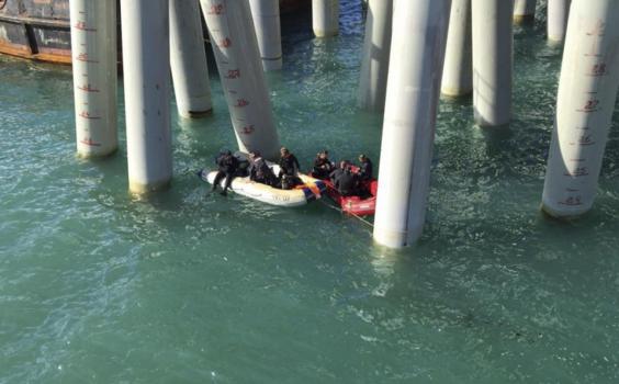 A picture from the scene, published by the emergency ministry on its website, showed divers on two boats searching waters underneath the pier.