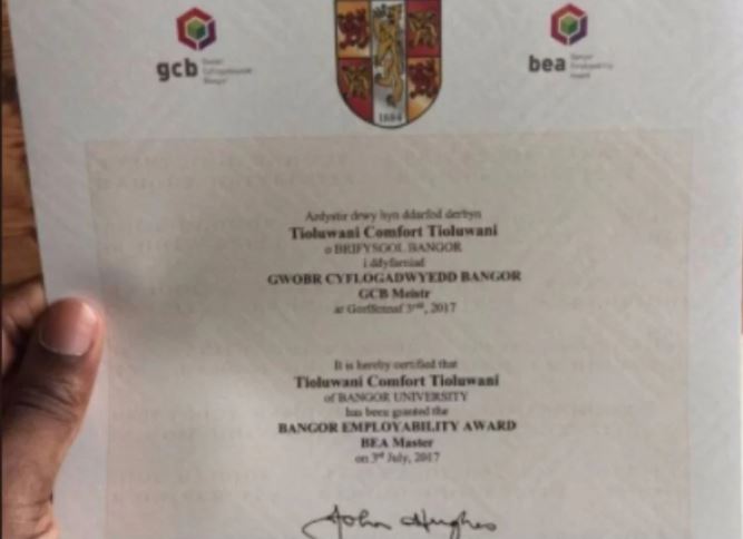 She recently bagged the 2017 best graduating student with distinction in Law (LLM) at University of Wales, United Kingdom. Having left Nigeria to pursue her postgraduate studies after a frustrated effort by the incessant strikes that prolonged her stay at the University of Abuja where she got her first degree in law, she made good her decision and excelled with flying colours.