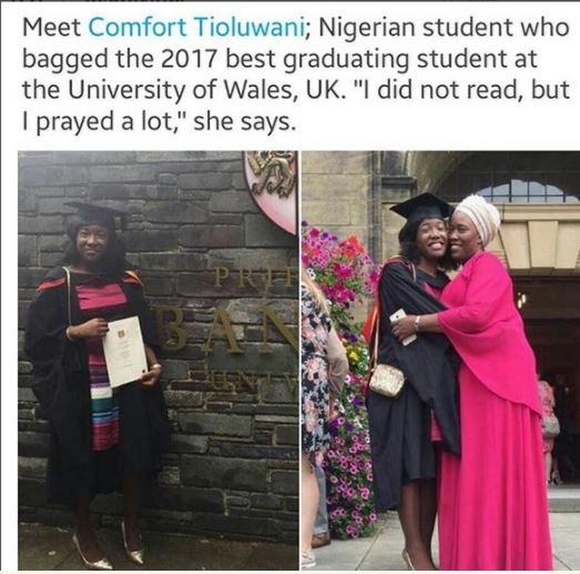 An egghead, Miss Tioluwani Comfort has joined the list of Nigerian youths who are doing the country proud abroad.