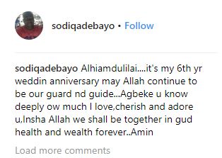 "Alhiamdulilai....it's my 6th yr weddin anniversary may Allah continue to be our guard nd guide...Agbeke u know deeply ow much I love,cherish and adore u,Insha Allah we shall be together in gud health and wealth forever..Amin"