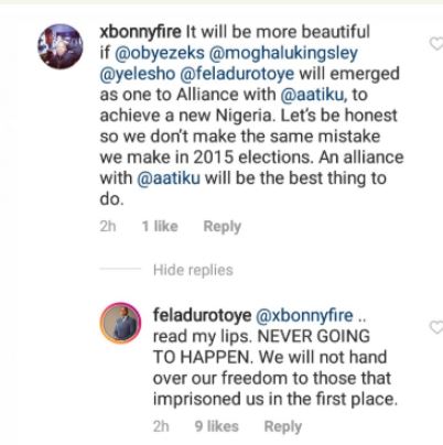 The netizen had urged Durotoye, Omoyele Sowore and madam Obiagheli Ezekwesili to enter a coalition with Atiku Abubakar against President Muhammadu Buhari.