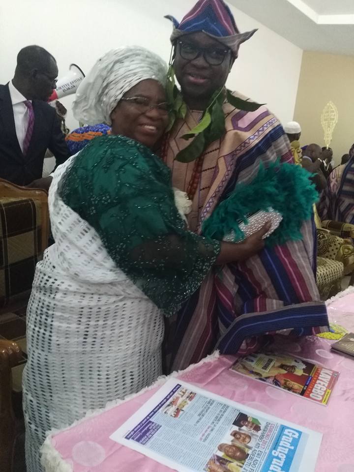 Governor Ayodele Fayose's mother, Evangelist Olufunke Fayose has been spotted at the installation of the Governor as the Apesin - Apagun P'ote of Ado Ekiti by the Ewi of Ado Ekiti, Oba Rufus Adejugbe.